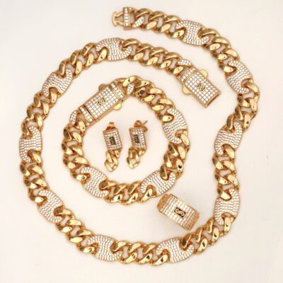 آبکاری18k ست گردنبند و دستبند ونکلیف مسترکپی از نمونه اورجینال ، سطح کار روکش طلا و آبکاری طلای قوی دارد.