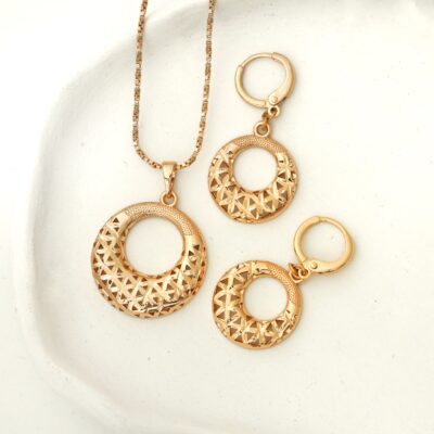 آبکاری18k نیمست دارای گردنبند و گوشواره و زنجیر ، از برند معروف ژوپینگ می باشد و سطح کار روکش طلا
