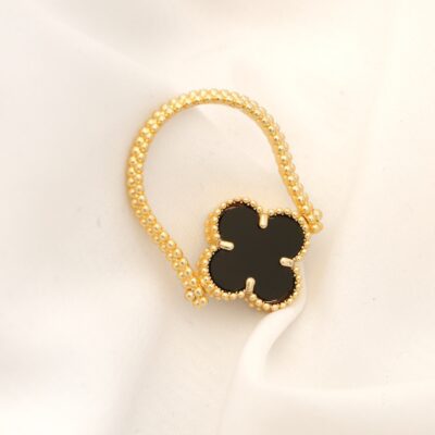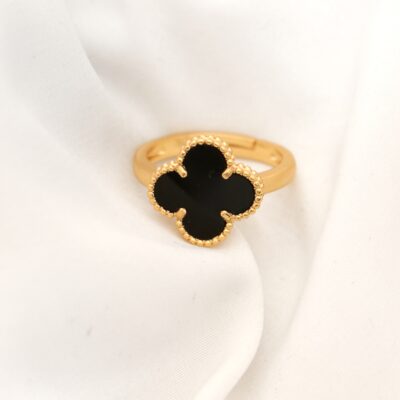 آبکاری18k  سطح کار روکش طلا و آبکاری طلای قوی دارد. یک سمت انگشتر طلایی و سمت دیگر سنگ مشکی کار