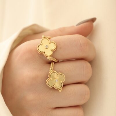 آبکاری18k  سطح کار روکش طلا و آبکاری طلای قوی دارد انگشتر فری سایز بوده و از پشت تنظیم سایز میشود
