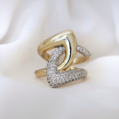 آبکاری18k  سطح کار روکش طلا و آبکاری طلای قوی دارد.یک سمت انگشتر طلایی و یک سمت سنگ‌ سفید کار شده