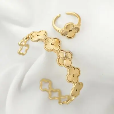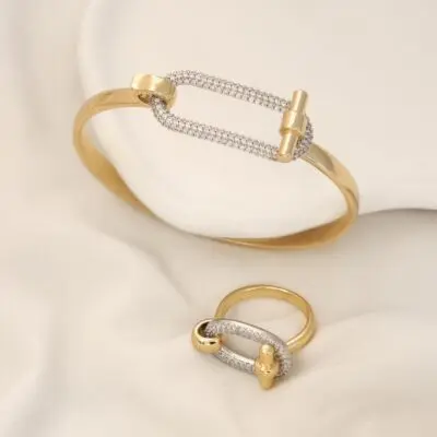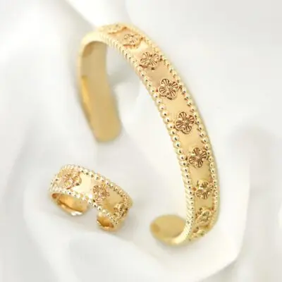 آبکاری18k ست انگشتر و دستبند ونکلیف مسترکپی از نمونه اورجینال ، سطح کار روکش طلا و آبکاری طلای قوی دارد