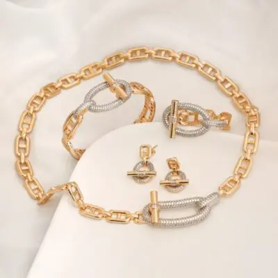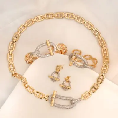 آبکاری18k  ست دستبند و انگشتر ونکلیف مسترکپی از نمونه اورجینال ، سطح کار روکش طلا و آبکاری طلای قوی دارد