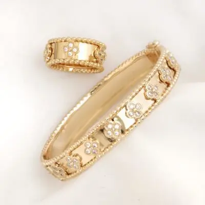 آبکاری18k ست انگشتر و دستبند ونکلیف مسترکپی از نمونه اورجینال ، سطح کار روکش طلا و آبکاری طلای قوی دارد