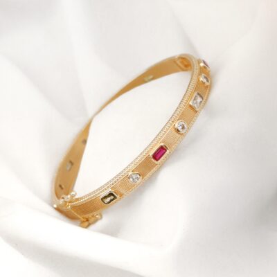 آبکاری18k این دستبند از برند معروف ژوپینگ می باشد و سطح کار روکش طلا و آبکاری طلای قوی دارد. برای