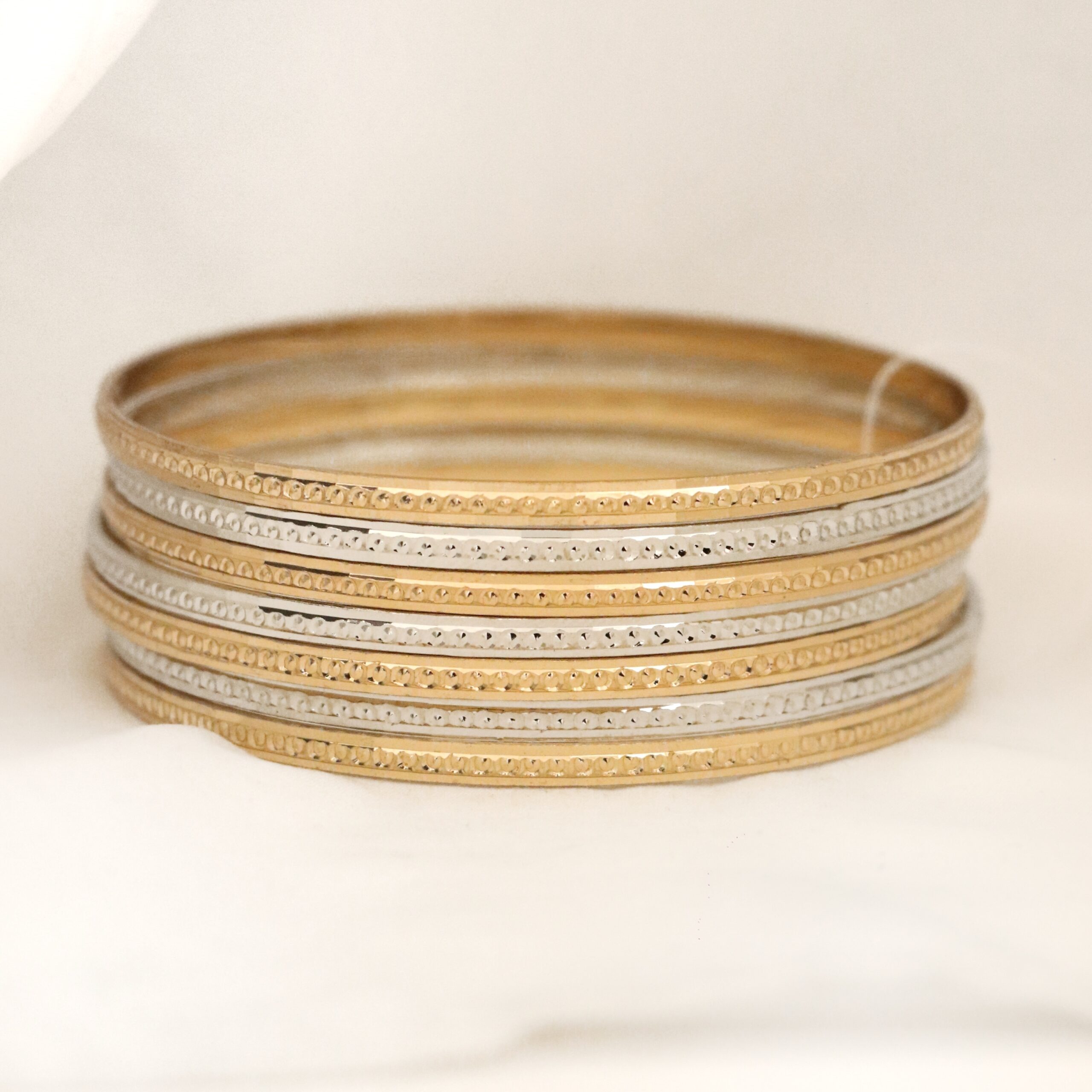 این النگو ها از برند معروف طلاروس می باشد و سطح کار روکش طلا و آبکاری طلای قوی دارد. پک های النگو به صورت7 عددی میباشد و در قبال هزینه ی پرداختی7 عدد النگو برای شما ارسال میشود. برای ماندگاری بالاتر کارها لطفا مطابق کارتی که داخل بسته بندی ارسال میشود اقدام کنید. عکس این محصول بدون هیچگونه فیلتر میباشد و در نور طبیعی انجام شده است که بسیار شبیه رنگ نمونه طلای النگوها میباشد. آماده سازی و ارسال تمامی محصولات بعد از2 روز کاری بدون احتساب روز تعطیلی میباشد