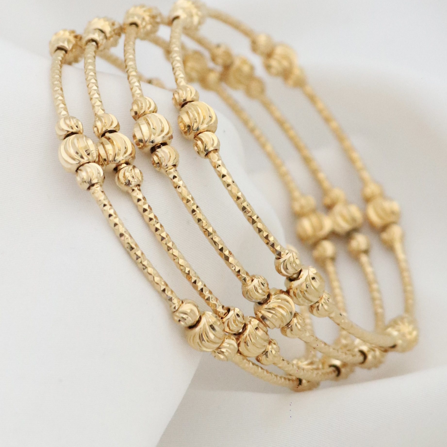 سطح کار روکش طلا و آبکاری طلای قوی دارد در قبال هزینه ی پرداختی 1 عدد النگو برای شما ارسال میشود. برای ماندگاری بالاتر کارها لطفا مطابق کارتی که داخل بسته بندی ارسال میشود اقدام کنید. عکس این محصول بدون هیچگونه فیلتر میباشد و در نور طبیعی انجام شده است که بسیار شبیه رنگ نمونه طلای النگوها میباشد. آماده سازی و ارسال تمامی محصولات بعد از2 روز کاری بدون احتساب روز تعطیلی میباشد