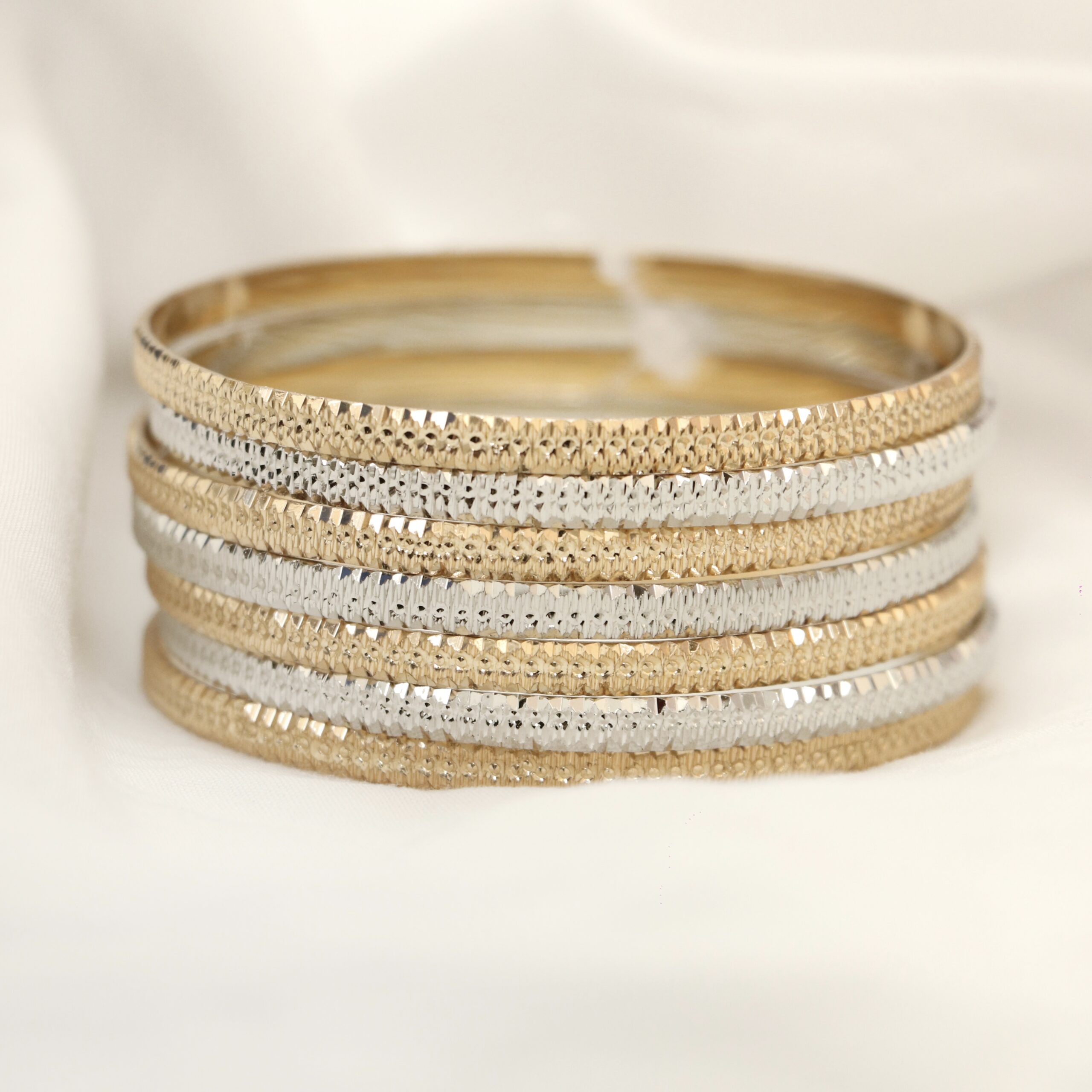 این النگو ها از برند معروف طلاروس می باشد و سطح کار روکش طلا و آبکاری طلای قوی دارد. فروش به صورت پک 7 عددی شامل 3 عدد النگوی سیلور و 4 عدد طلایی میباشد. برای ماندگاری بالاتر کارها لطفا مطابق کارتی که داخل بسته بندی ارسال میشود اقدام کنید. عکس این محصول بدون هیچگونه فیلتر میباشد و در نور طبیعی انجام شده است. آماده سازی و ارسال تمامی محصولات بعد از2 روز کاری بدون احتساب روز تعطیلی میباشد.