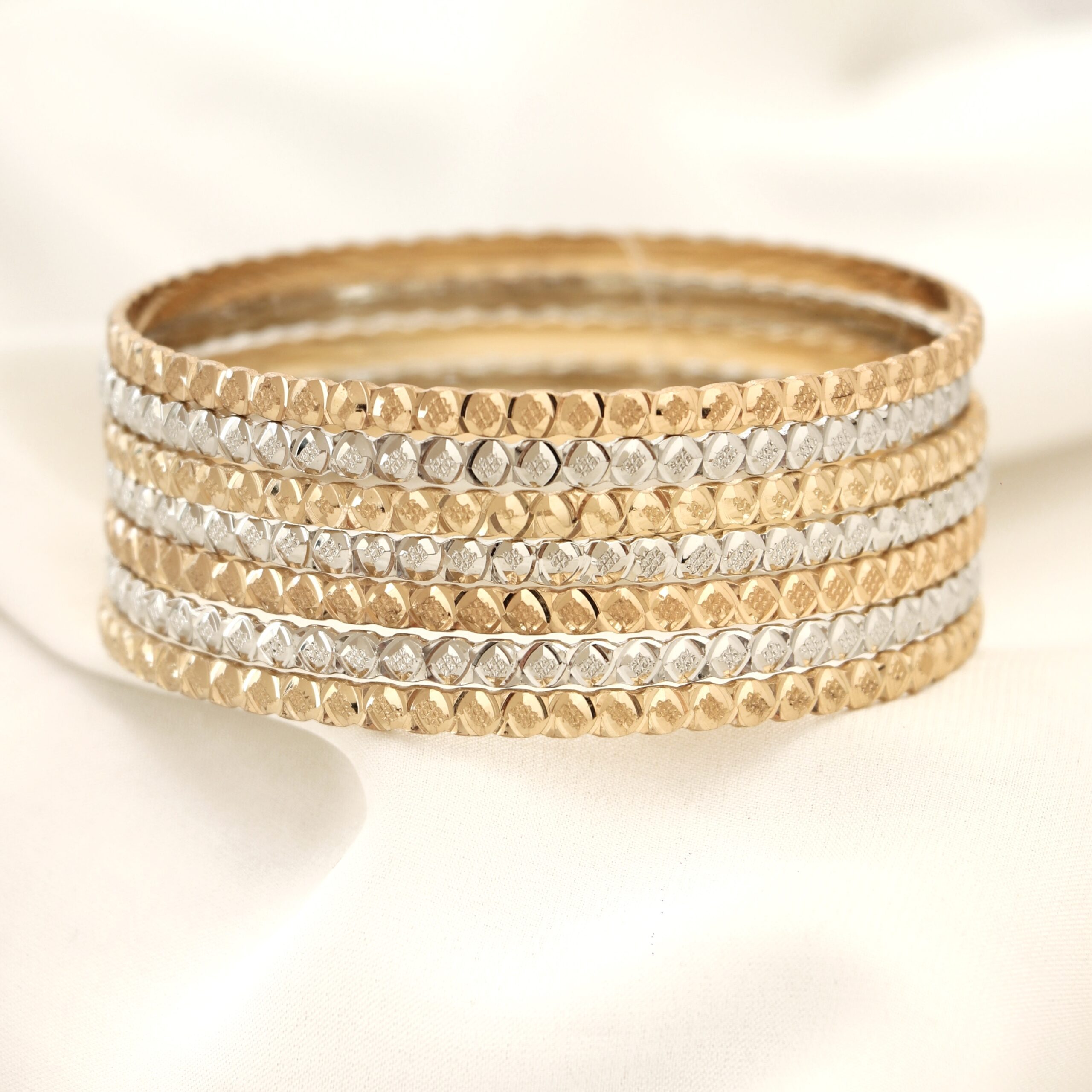 این النگو ها از برند معروف طلاروس می باشد و سطح کار روکش طلا و آبکاری طلای قوی دارد. پک های النگو به صورت 7 عددی میباشد و در قبال هزینه ی پرداختی 7عدد النگو 4 عدد طلایی و 3 عدد نقره ایی برای شما ارسال میشود. برای ماندگاری بالاتر کارها لطفا مطابق کارتی که داخل بسته بندی ارسال میشود اقدام کنید. عکس این محصول بدون هیچگونه فیلتر میباشد و در نور طبیعی انجام شده است که بسیار شبیه رنگ نمونه طلای النگوها میباشد. آماده سازی و ارسال تمامی محصولات بعد از2 روز کاری بدون احتساب روز تعطیلی میباشد.