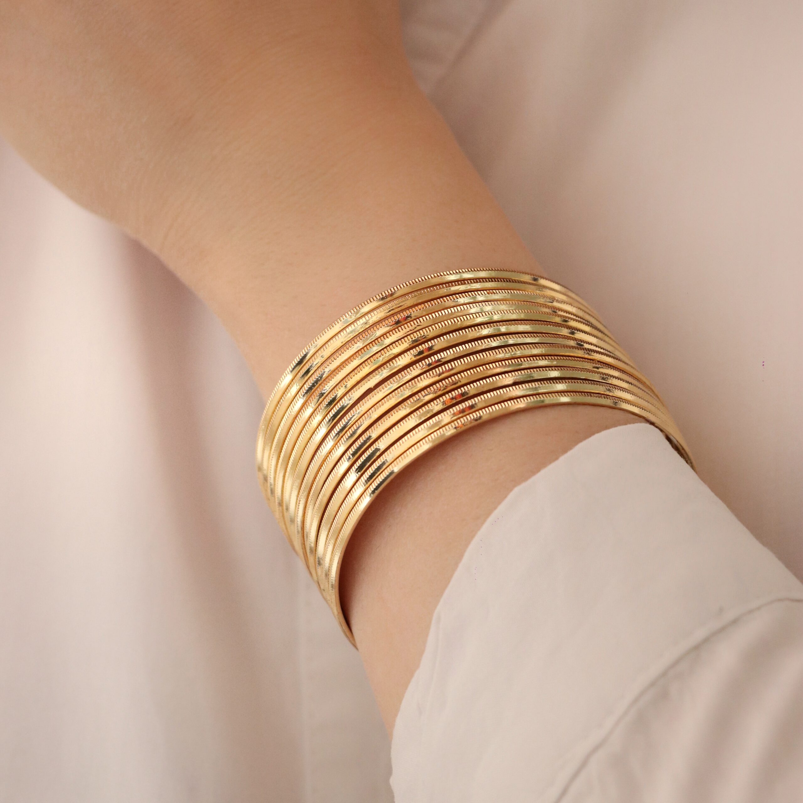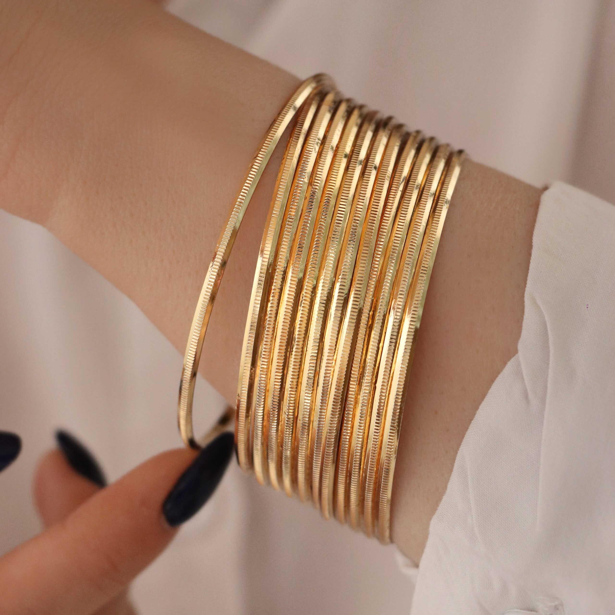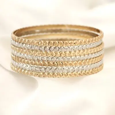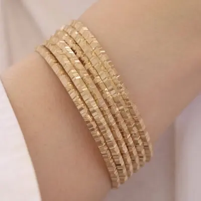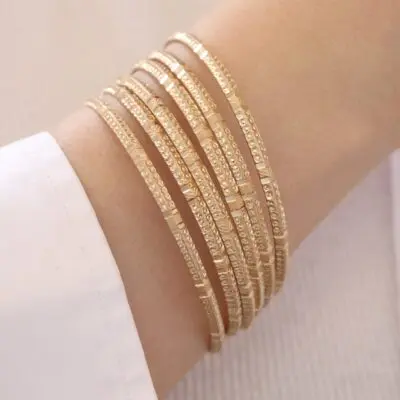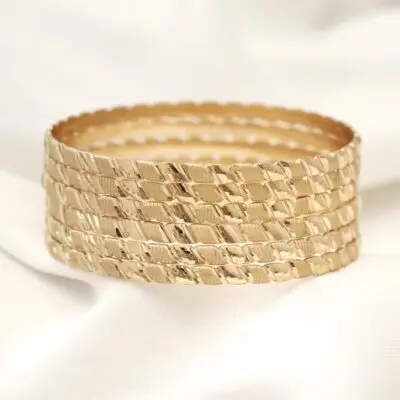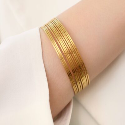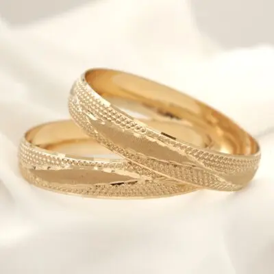 این النگو ها سطح کار روکش طلا و آبکاری طلای قوی دارد. سطح داخلی کار همانند طلا هک 750 دارد.پک های النگو به صورت 3 عددی میباشد و در قبال هزینه ی پرداختی 3عدد النگو برای شما ارسال میشود. برای ماندگاری بالاتر کارها لطفا مطابق کارتی که داخل بسته بندی ارسال میشود اقدام کنید. عکس این محصول بدون هیچگونه فیلتر میباشد و در نور طبیعی انجام شده است که بسیار شبیه رنگ نمونه طلای النگوها میباشد. آماده سازی و ارسال تمامی محصولات بعد از2 روز کاری بدون احتساب روز تعطیلی میباشد
