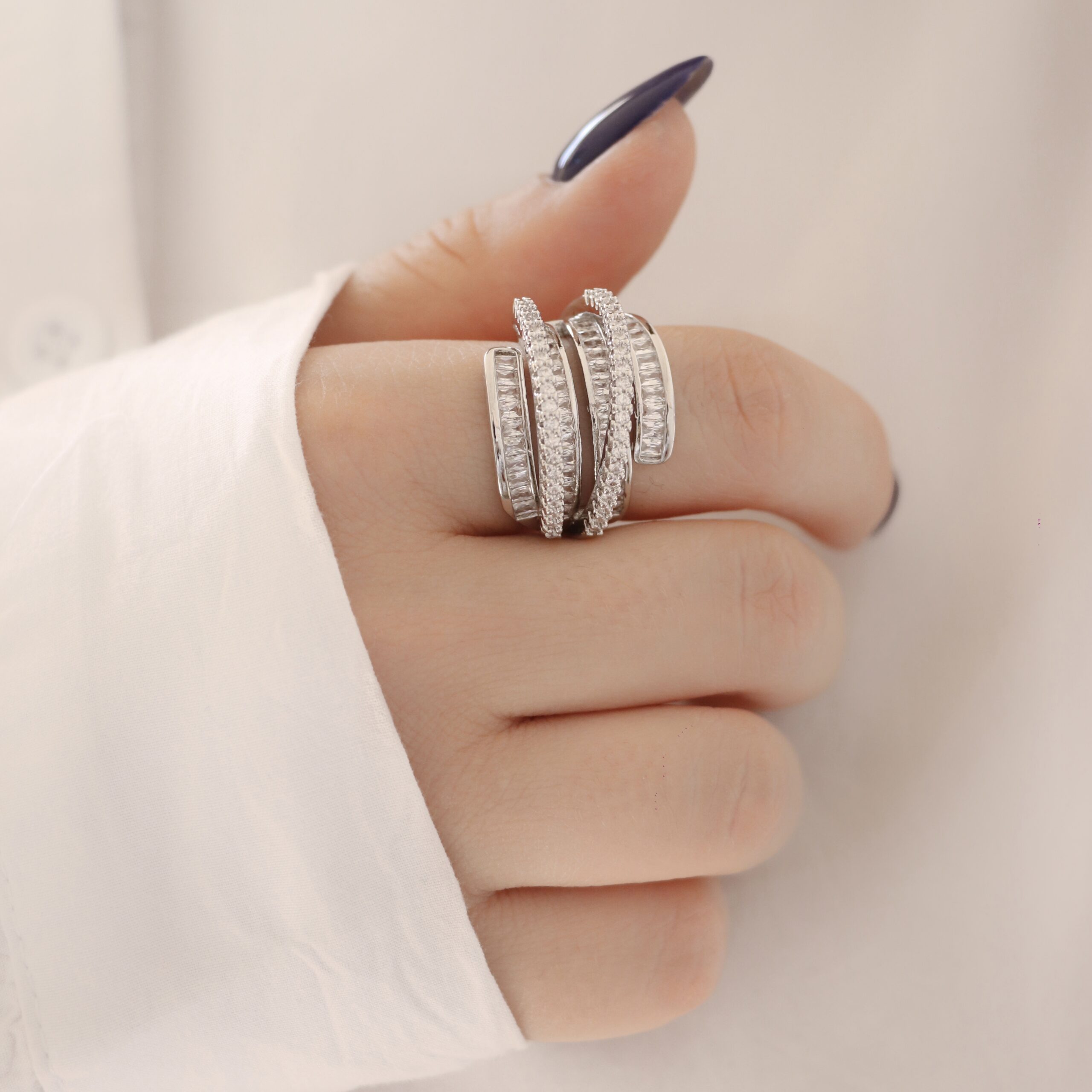 سطح انگشتر تماما نگین کاری قوی شده که طرح کار مشابه جواهر و بسیار لوکس میباشد.فری سایز و قابل تنظیم از سایز 6 تا 9 . برای ماندگاری بالاتر کارها لطفا مطابق کارتی که داخل بسته بندی ارسال میشود اقدام کنید. عکس این محصول بدون هیچگونه فیلتر میباشد و در نور طبیعی انجام شده است. آماده سازی و ارسال تمامی محصولات بعد از2 روز کاری بدون احتساب روز تعطیلی میباشد