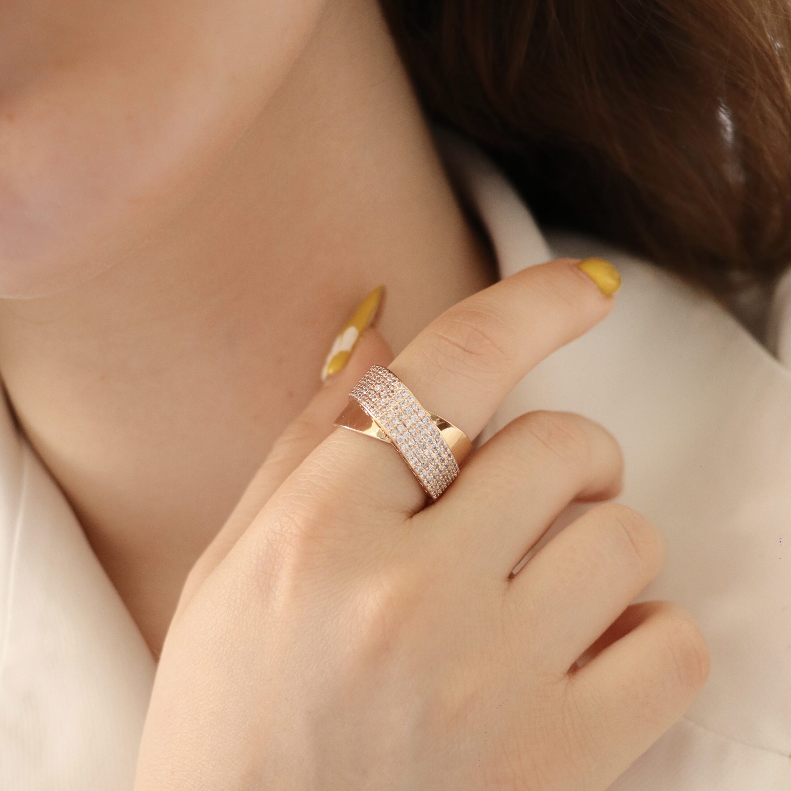 انگشتر ضربدری فول نگین