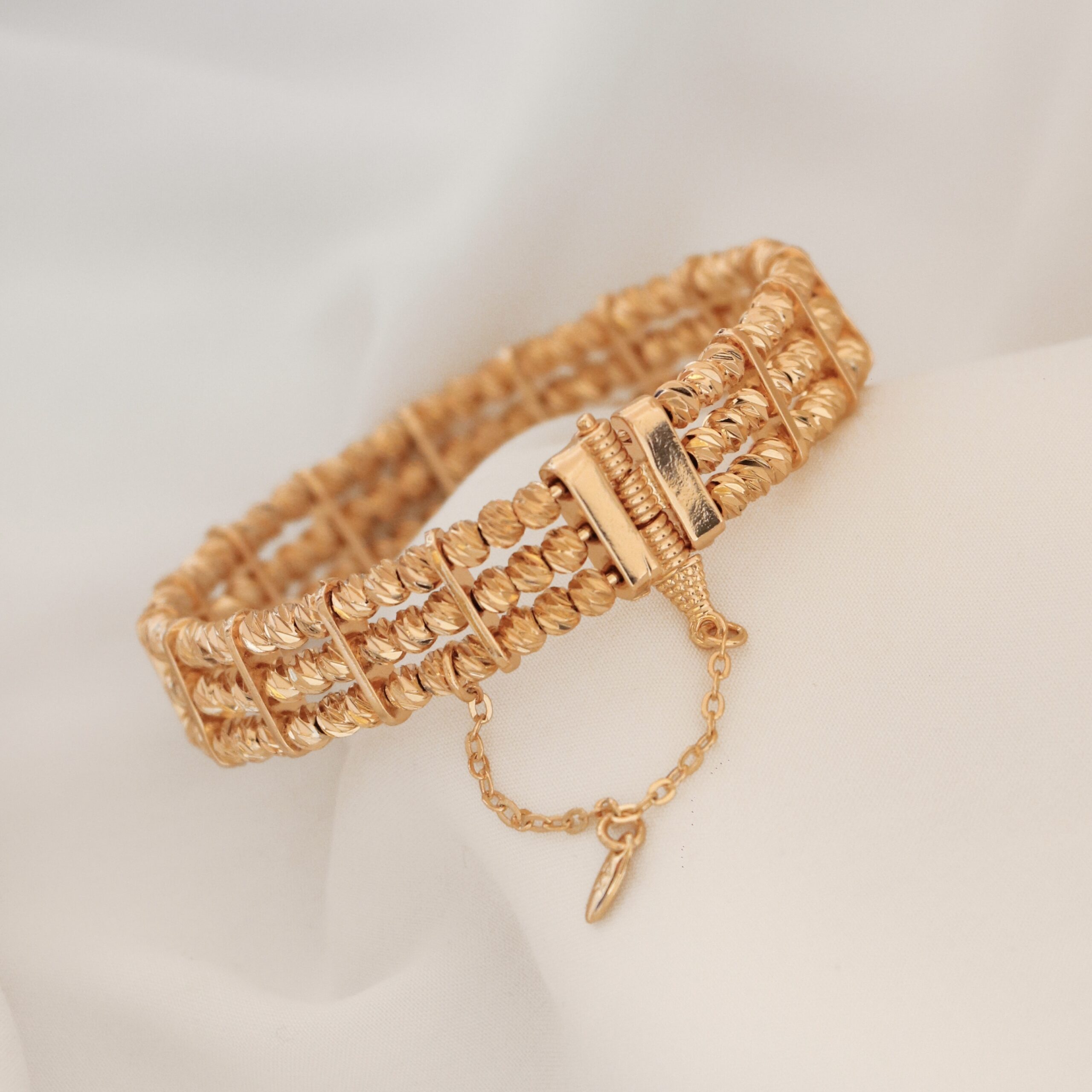 این دستبند از برند معروف ژوپینگ می باشد و سطح کار روکش طلا و آبکاری طلای قوی دارد. بنگل مناسب سایز 3 و 4 میباشد برای ماندگاری بالاتر کارها لطفا مطابق کارتی که داخل بسته بندی ارسال میشود اقدام کنید. عکس این محصول بدون هیچگونه فیلتر میباشد و در نور طبیعی انجام شده است. آماده سازی و ارسال تمامی محصولات بعد از2 روز کاری بدون احتساب روز تعطیلی میباشد