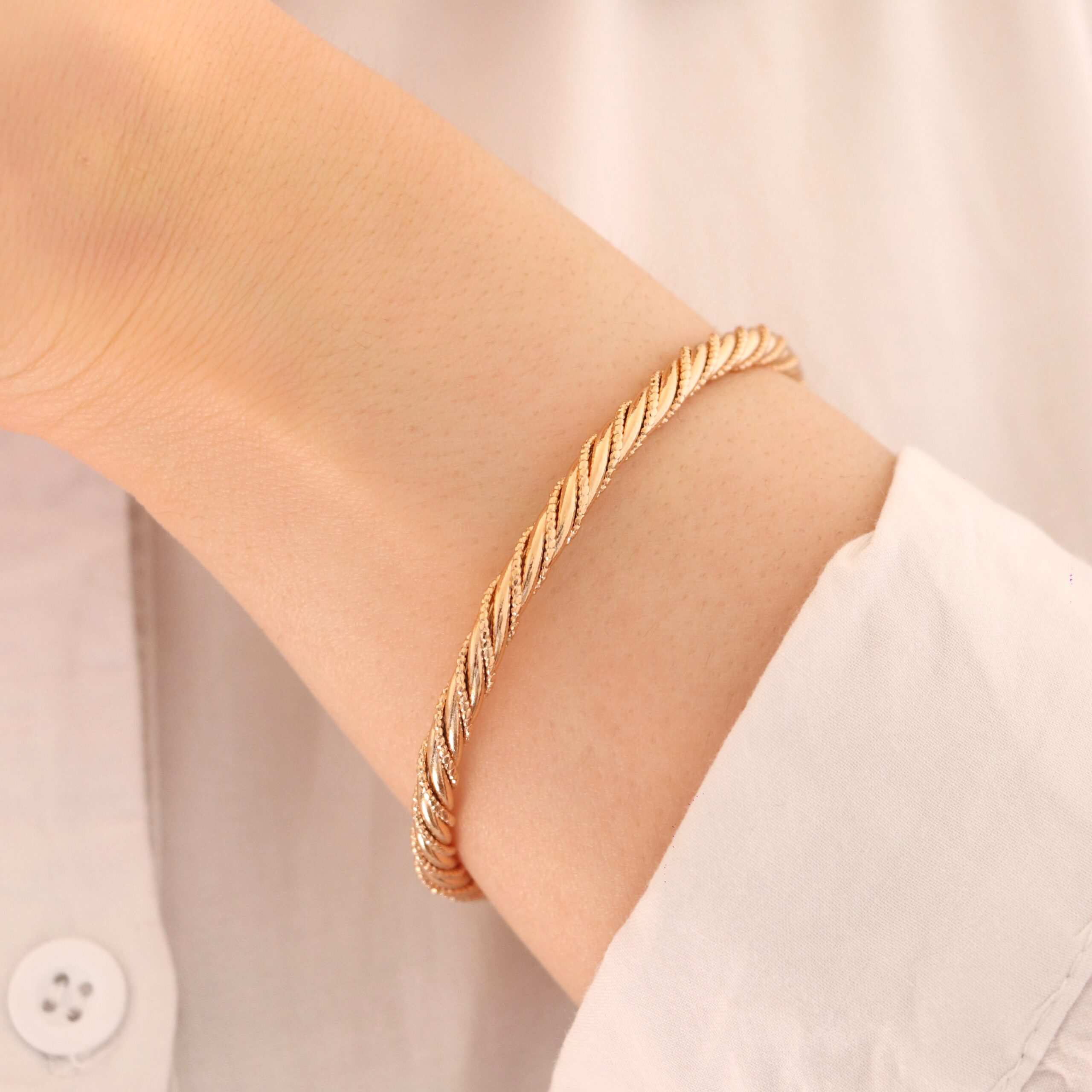این دستبند از برند معروف ژوپینگ می باشد و سطح کار روکش طلا و آبکاری طلای قوی دارد.این کار فری سایز میباشد و تا سایز 4 اندازه است. برای ماندگاری بالاتر کارها لطفا مطابق کارتی که داخل بسته بندی ارسال میشود اقدام کنید. عکس این محصول بدون هیچگونه فیلتر میباشد و در نور طبیعی انجام شده است. آماده سازی و ارسال تمامی محصولات بعد از2 روز کاری بدون احتساب روز تعطیلی میباشد