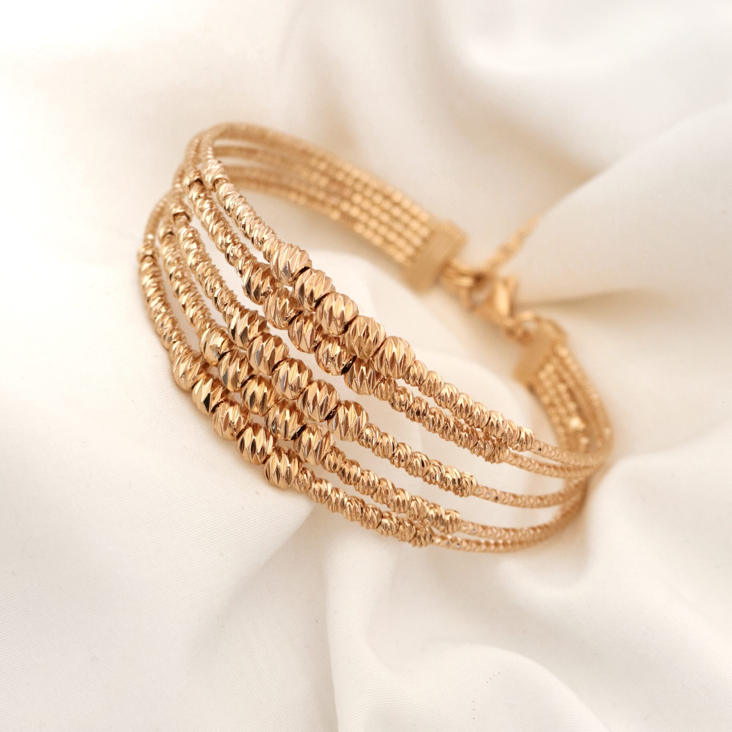 این دستبند از برند معروف ژوپینگ می باشد و سطح کار روکش طلا و آبکاری طلای قوی دارد. برای ماندگاری بالاتر کارها لطفا مطابق کارتی که داخل بسته بندی ارسال میشود اقدام کنید. عکس این محصول بدون هیچگونه فیلتر میباشد و در نور طبیعی انجام شده است. آماده سازی و ارسال تمامی محصولات بعد از2 روز کاری بدون احتساب روز تعطیلی میباشد.