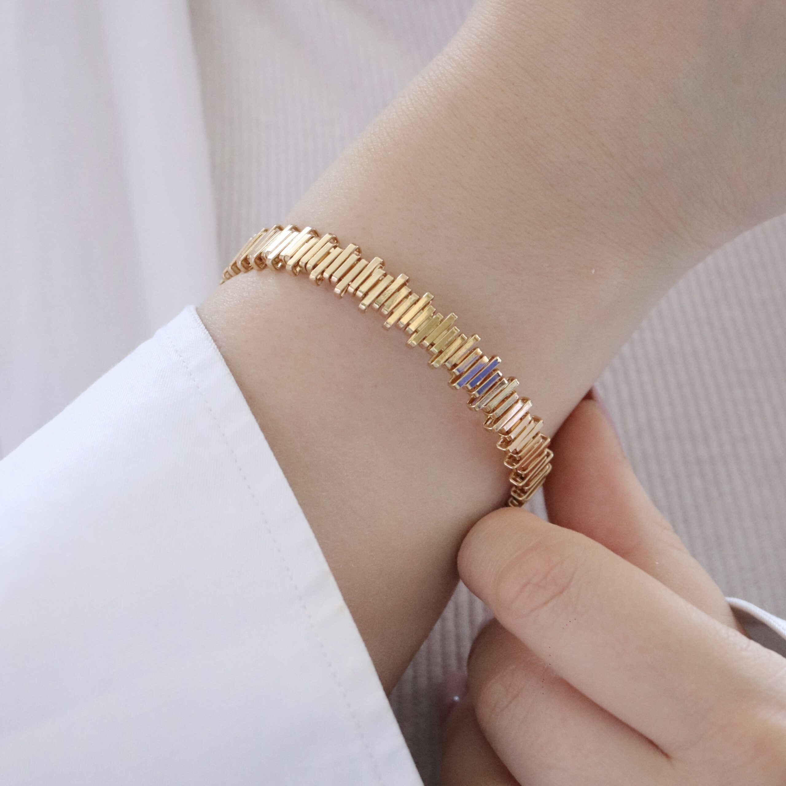 این دستبند از برند معروف ژوپینگ می باشد و سطح کار روکش طلا و آبکاری طلای قوی دارد.این کار فری سایز است و تا سایز 3 اندازه میباشد.برای ماندگاری بالاتر کارها لطفا مطابق کارتی که داخل بسته بندی ارسال میشود اقدام کنید. عکس این محصول بدون هیچگونه فیلتر میباشد و در نور طبیعی انجام شده است. آماده سازی و ارسال تمامی محصولات بعد از2 روز کاری بدون احتساب روز تعطیلی میباشد