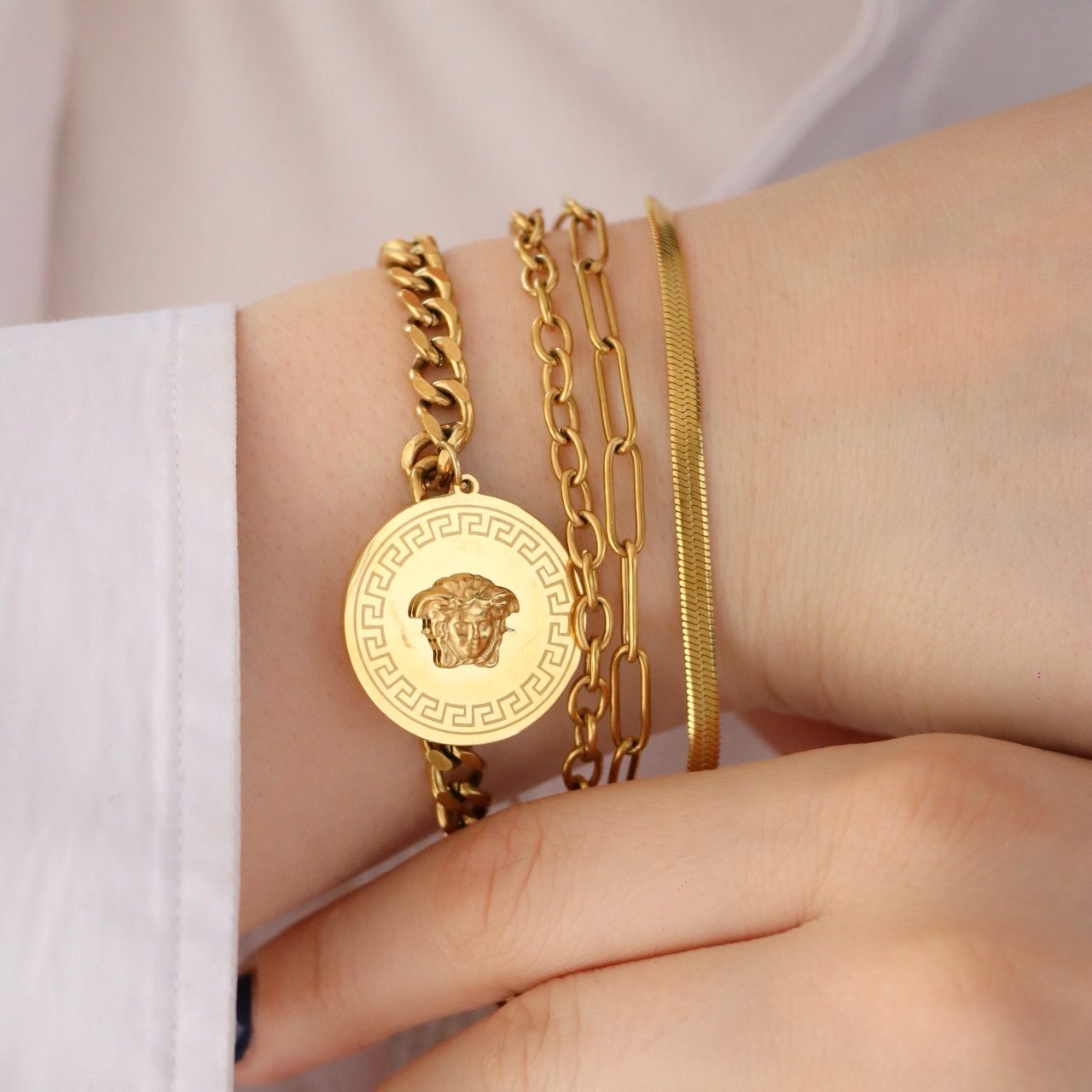 این دستبند تماما استیل میباشد و سطح کار روکش طلا و آبکاری طلای قوی دارد. هر 4 رج به هم متصل بوده و با یک قفل بسته میشود.برای ماندگاری بالاتر کارها لطفا مطابق کارتی که داخل بسته بندی ارسال میشود اقدام کنید. عکس این محصول بدون هیچگونه فیلتر میباشد و در نور طبیعی انجام شده است. آماده سازی و ارسال تمامی محصولات بعد از2 روز کاری بدون احتساب روز تعطیلی میباشد