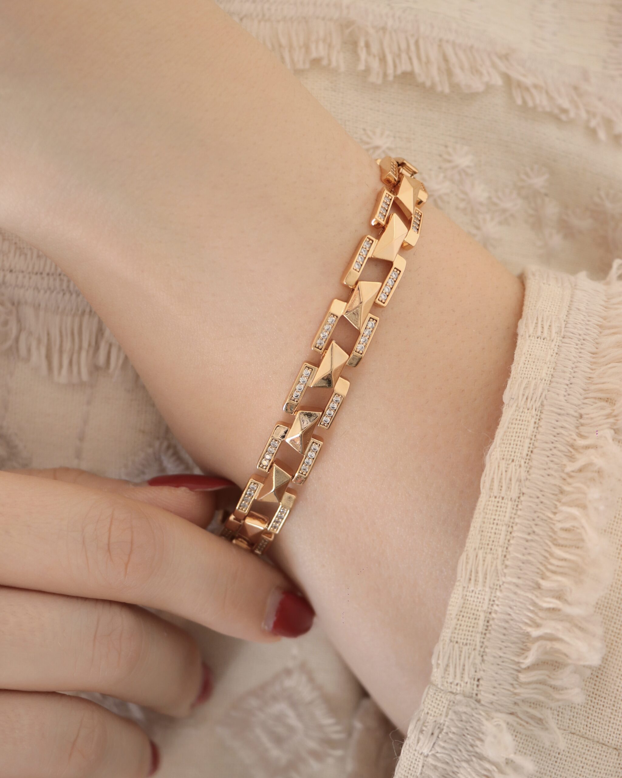 این دستبند بسیار زیبا و چشم نواز و مشابه طلا میباشد.