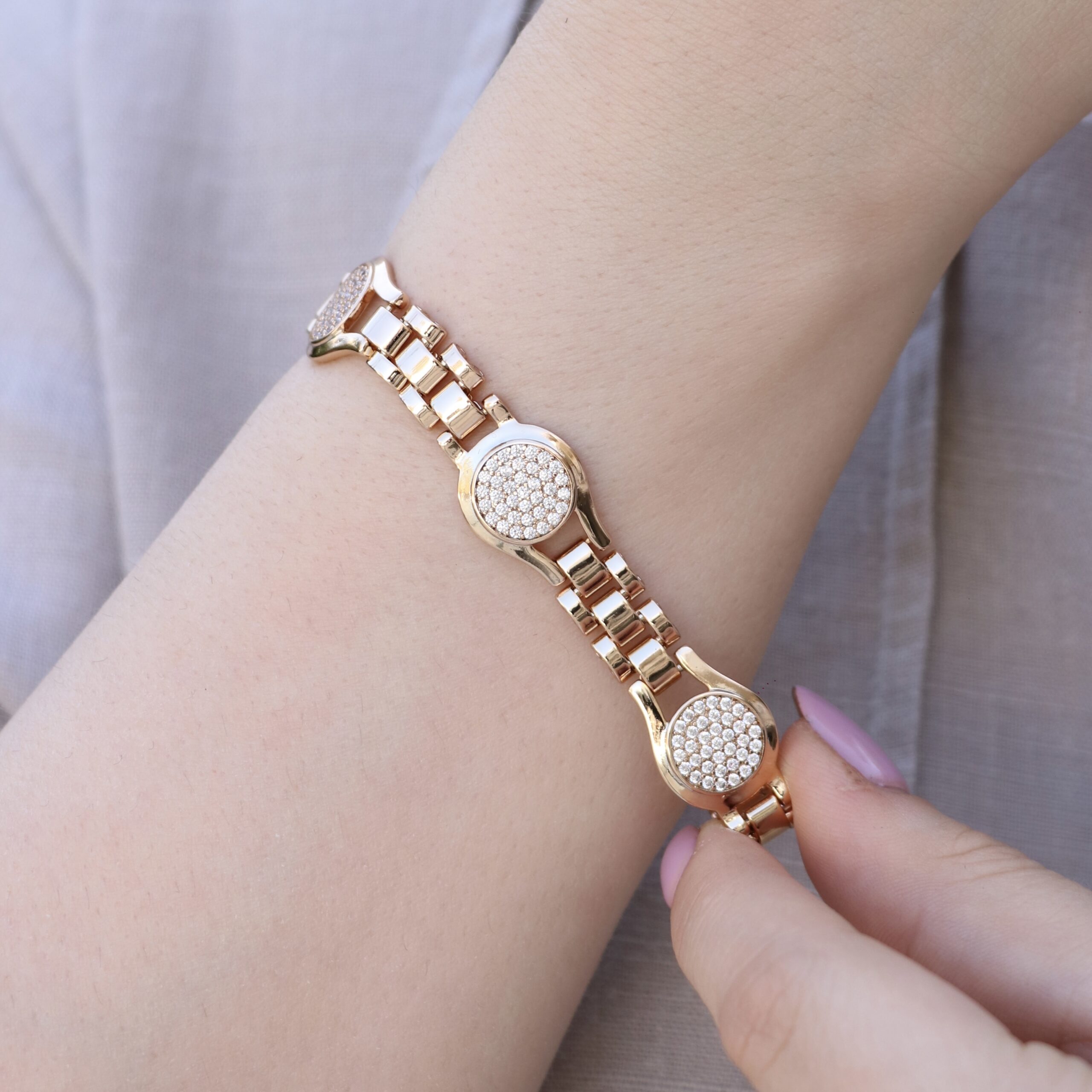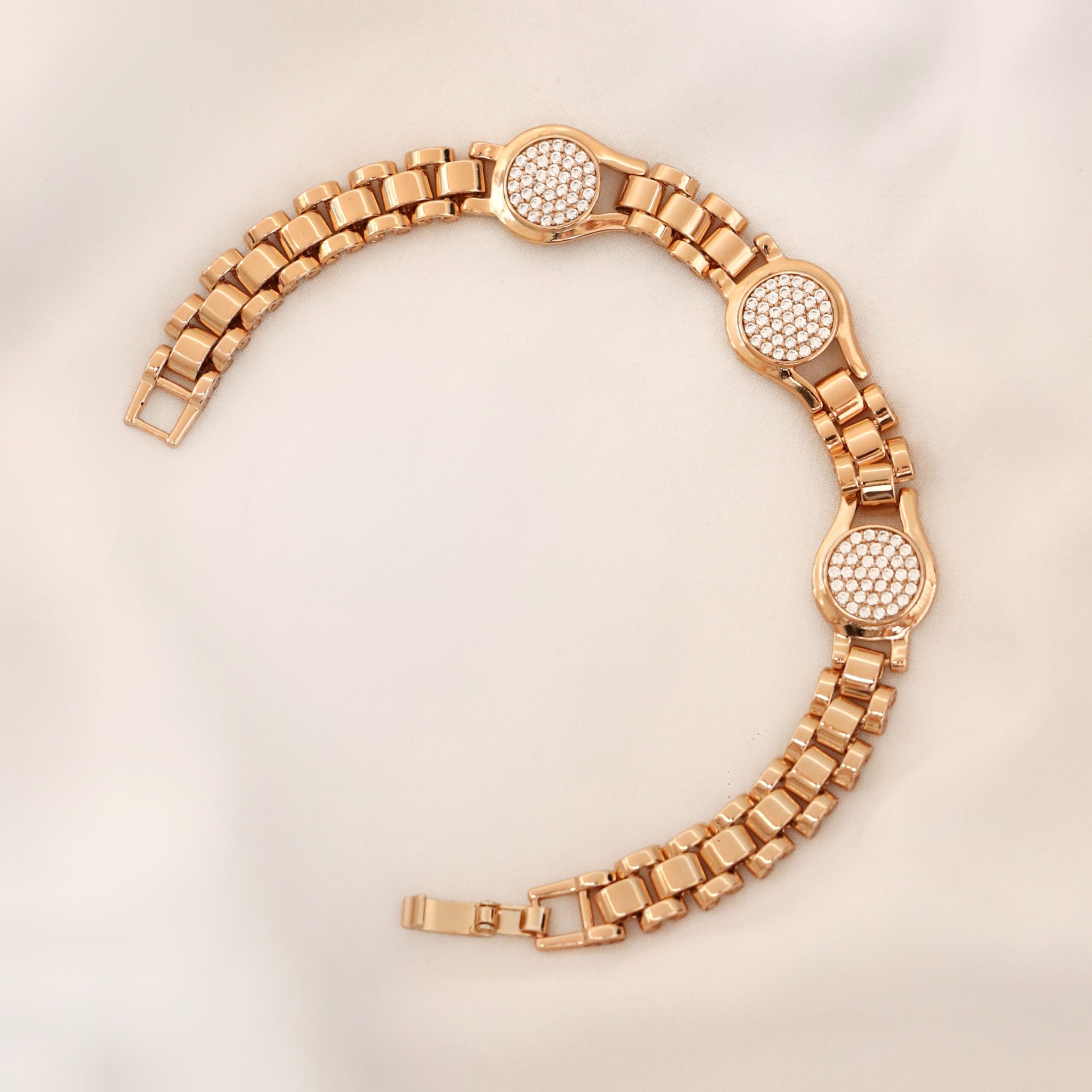 این دستبند از برند معروف ژوپینگ می باشد و سطح کار روکش طلا و آبکاری طلای قوی دارد.برای ماندگاری بالاتر کارها لطفا مطابق کارتی که داخل بسته بندی ارسال میشود اقدام کنید. عکس این محصول بدون هیچگونه فیلتر میباشد و در نور طبیعی انجام شده است. آماده سازی و ارسال تمامی محصولات بعد از2 روز کاری بدون احتساب روز تعطیلی میباشد