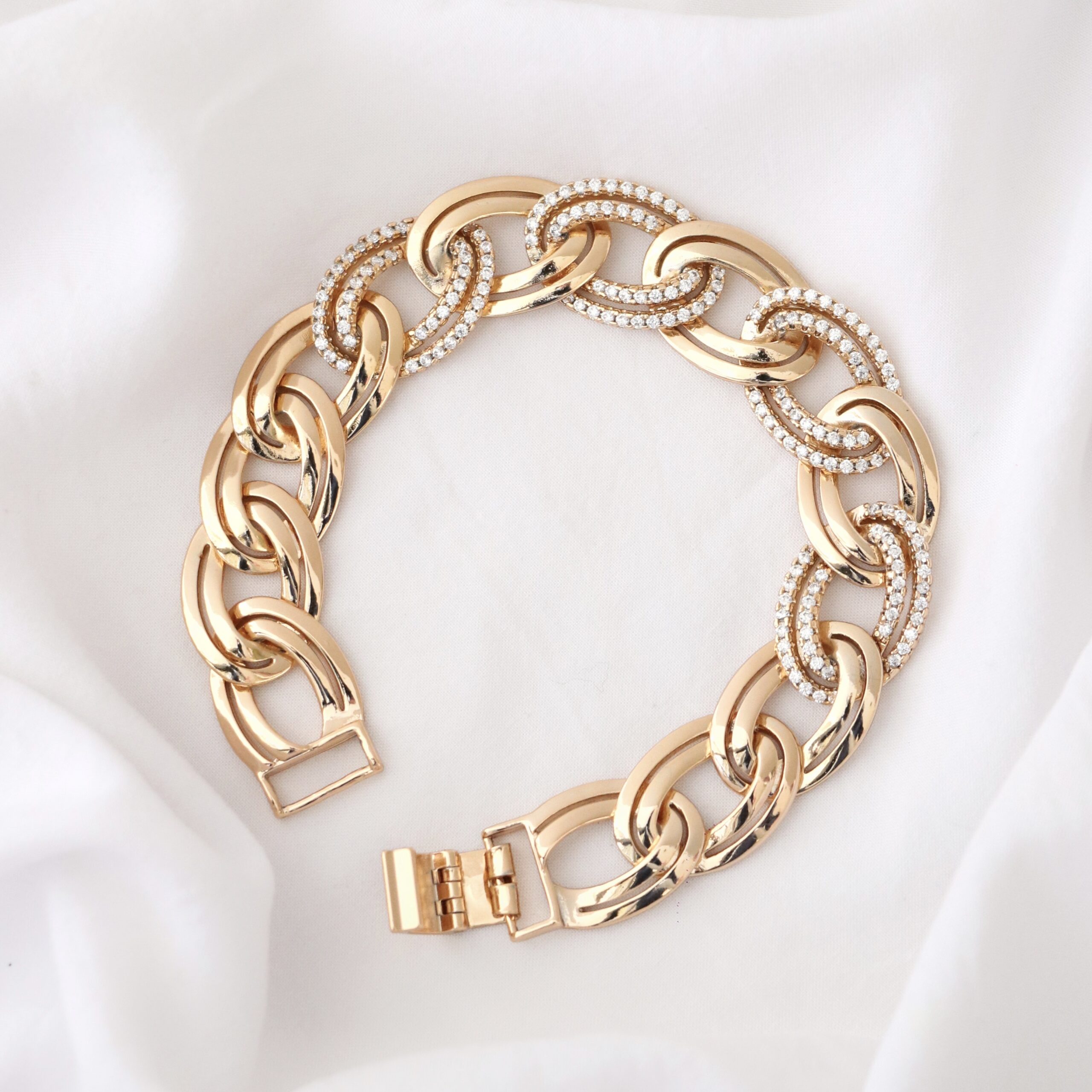 این دستبند از برند معروف ژوپینگ می باشد و سطح کار روکش طلا و آبکاری طلای قوی دارد. طول دستبند با قفل 19 سانتی متر است . برای ماندگاری بالاتر کارها لطفا مطابق کارتی که داخل بسته بندی ارسال میشود اقدام کنید. عکس این محصول بدون هیچگونه فیلتر میباشد و در نور طبیعی انجام شده است. آماده سازی و ارسال تمامی محصولات بعد از2 روز کاری بدون احتساب روز تعطیلی میباشد.