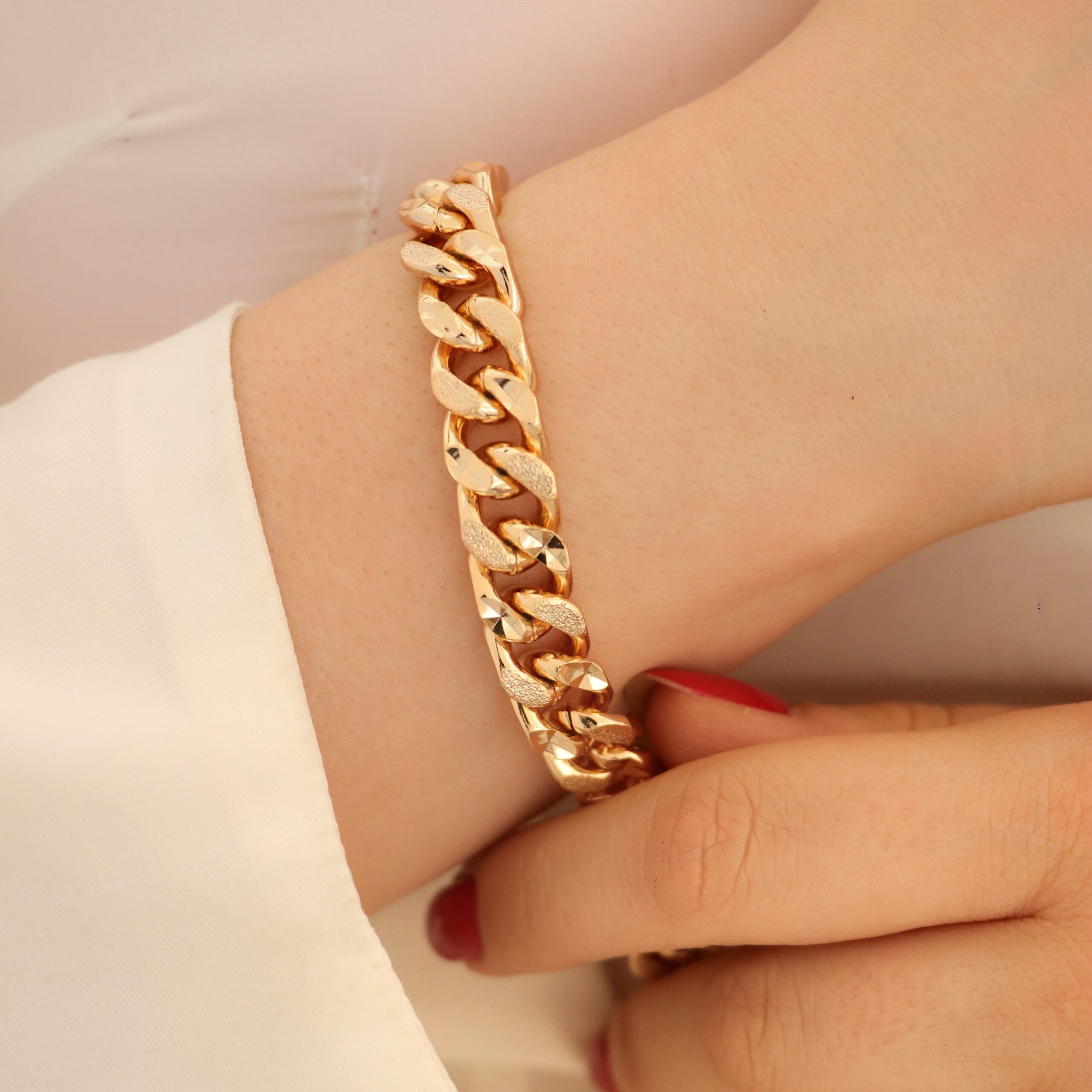 این دستبند از برند معروف ژوپینگ می باشد و سطح کار روکش طلا و آبکاری طلای قوی دارد. طول این کار 20 سانت میباشد برای ماندگاری بالاتر کارها لطفا مطابق کارتی که داخل بسته بندی ارسال میشود اقدام کنید. عکس این محصول بدون هیچگونه فیلتر میباشد و در نور طبیعی انجام شده است. آماده سازی و ارسال تمامی محصولات بعد از2 روز کاری بدون احتساب روز تعطیلی میباشد