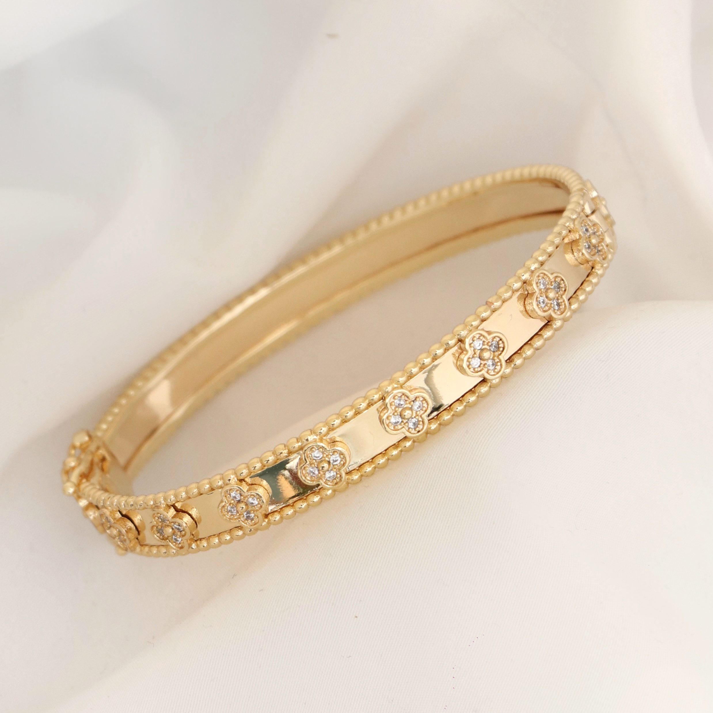 دستبند ونکلیف مسترکپی از نمونه اورجینال ، سطح کار روکش طلا و آبکاری طلای قوی دارد ، نگین ها مخراج شده و بدون ریزش هستند . دستبند تا سایز 3 اندازه میشود.برای ماندگاری بالاتر کارها لطفا مطابق کارتی که داخل بسته بندی ارسال میشود اقدام کنید. عکس این محصول بدون هیچگونه فیلتر میباشد و در نور طبیعی انجام شده است. آماده سازی و ارسال تمامی محصولات بعد از2 روز کاری بدون احتساب روز تعطیلی میباشد.