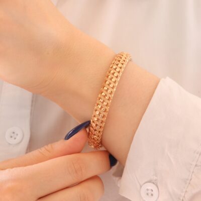این دستبند از برند معروف ژوپینگ می باشد و سطح کار روکش طلا و آبکاری طلای قوی دارد. طول این کار 18 سانت به همراه 5 سانت زنجیر تنظیم میباشد برای ماندگاری بالاتر کارها لطفا مطابق کارتی که داخل بسته بندی ارسال میشود اقدام کنید. عکس این محصول بدون هیچگونه فیلتر میباشد و در نور طبیعی انجام شده است. آماده سازی و ارسال تمامی محصولات بعد از2 روز کاری بدون احتساب روز تعطیلی میباشد