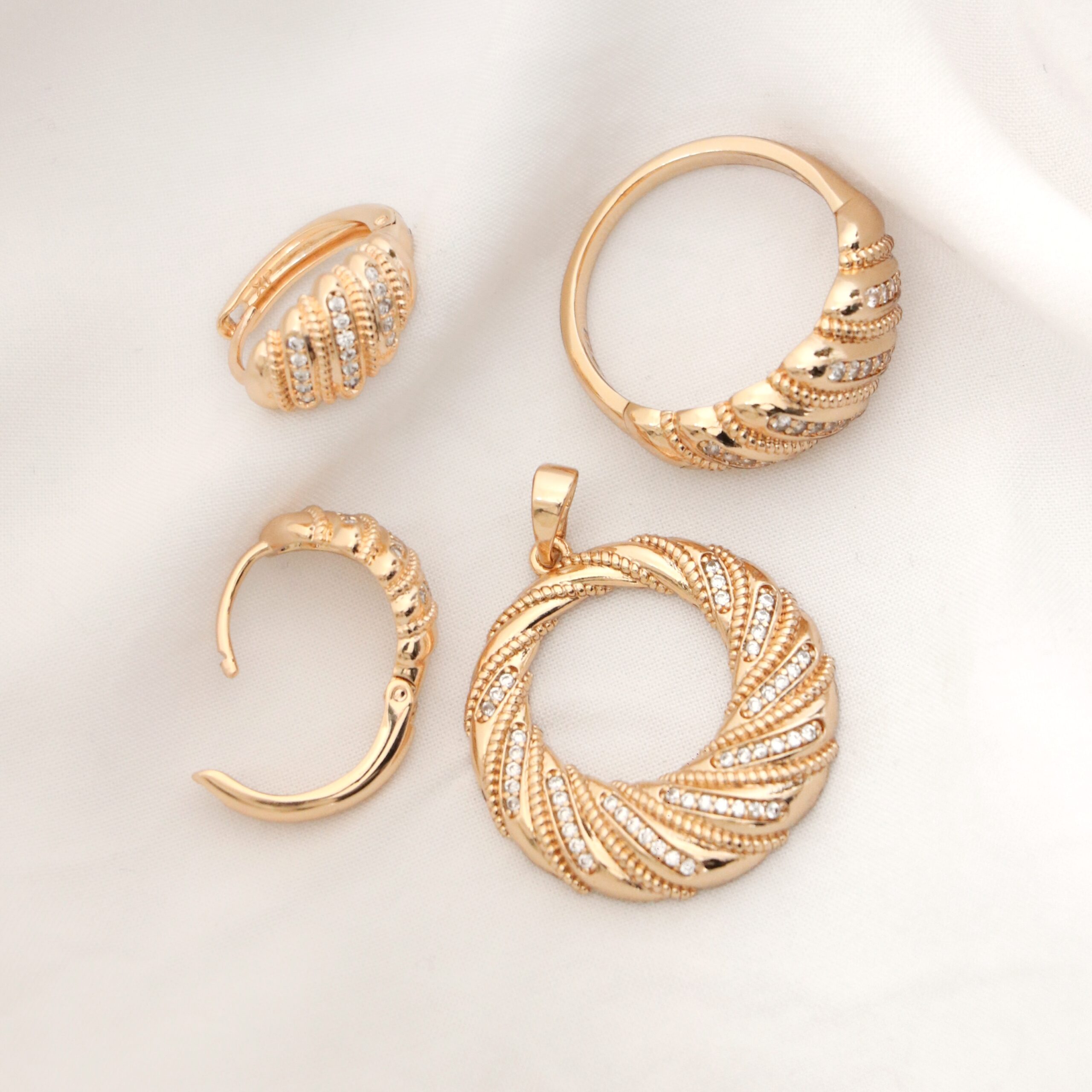 این سرویس از برند معروف ژوپینگ می باشد و سطح کار روکش طلا و آبکاری طلای قوی دارد.قبل از خرید حتما راهنمای سایز رو پایین توضیحات ببینید و طبق سایزتون سرویس رو انتخاب کنید.بنگل مناسب سایز 2 و 3 ،انگشتر مناسب سایز 8 میباشد . برای ماندگاری بالاتر کارها لطفا مطابق کارتی که داخل بسته بندی ارسال میشود اقدام کنید. عکس این محصول بدون هیچگونه فیلتر میباشد و در نور طبیعی انجام شده است. آماده سازی و ارسال تمامی محصولات بعد از2 روز کاری بدون احتساب روز تعطیلی میباشد.سرویس فاقد زنجیر میباشد.