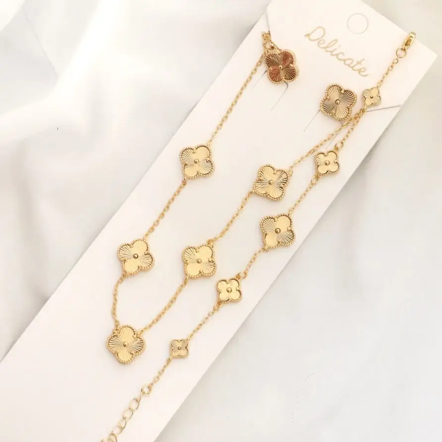 سرویس ونکلیف مسترکپی از نمونه اورجینال ، شامل دستبند، گوشواره ، گردنبند سطح کار روکش طلا و آبکاری طلای قوی دارد ، دستبند تا سایز 3 اندازه میشود.برای ماندگاری بالاتر کارها لطفا مطابق کارتی که داخل بسته بندی ارسال میشود اقدام کنید. عکس این محصول بدون هیچگونه فیلتر میباشد و در نور طبیعی انجام شده است. آماده سازی و ارسال تمامی محصولات بعد از2 روز کاری بدون احتساب روز تعطیلی میباشد.