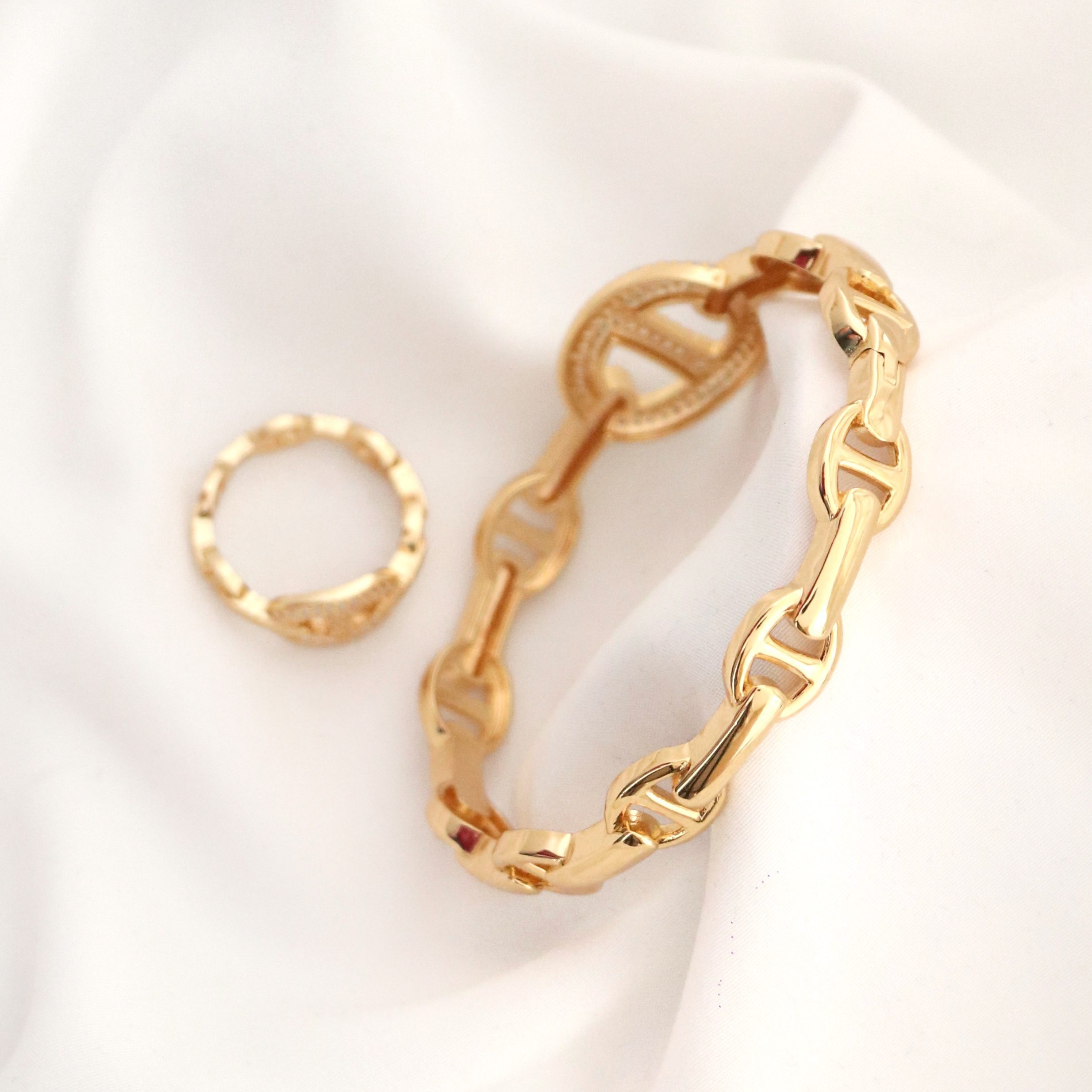 ست بنگل و انگشتر هرمس، سطح کار روکش طلا و آبکاری طلای قوی دارد.انگشتر مناسب سایز 7 و 8 _بنگل مناسب سایز 3 و4 میباشد ، برای ماندگاری بالاتر کارها لطفا مطابق کارتی که داخل بسته بندی ارسال میشود اقدام کنید. عکس این محصول بدون هیچگونه فیلتر میباشد و در نور طبیعی انجام شده است. آماده سازی و ارسال تمامی محصولات بعد از2 روز کاری بدون احتساب روز تعطیلی میباشد.