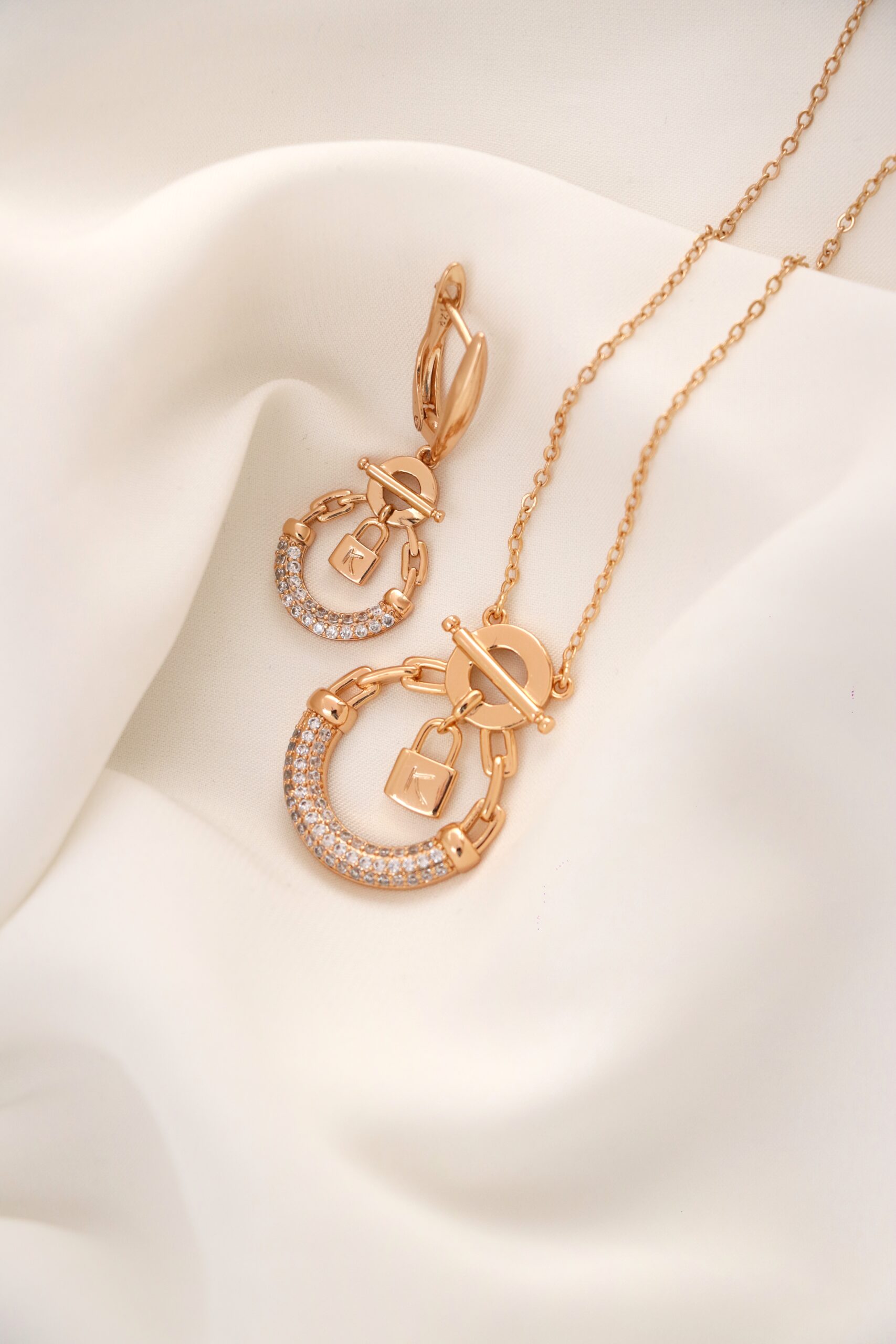 این نیمست از برند معروف ژوپینگ می باشد و سطح کار روکش طلا و آبکاری طلای قوی دارد. نیمست شامل یک جفت گوشواره، پلاک و زنجیر میباشد. طول زنجیر 40 سانت و بسیار شبیه به نمونه طلا میباشد. برای ماندگاری بالاتر کارها لطفا مطابق کارتی که داخل بسته بندی ارسال میشود اقدام کنید. عکس این محصول بدون هیچگونه فیلتر میباشد و در نور طبیعی انجام شده است. آماده سازی و ارسال تمامی محصولات بعد از2 روز کاری بدون احتساب روز تعطیلی میباشد.