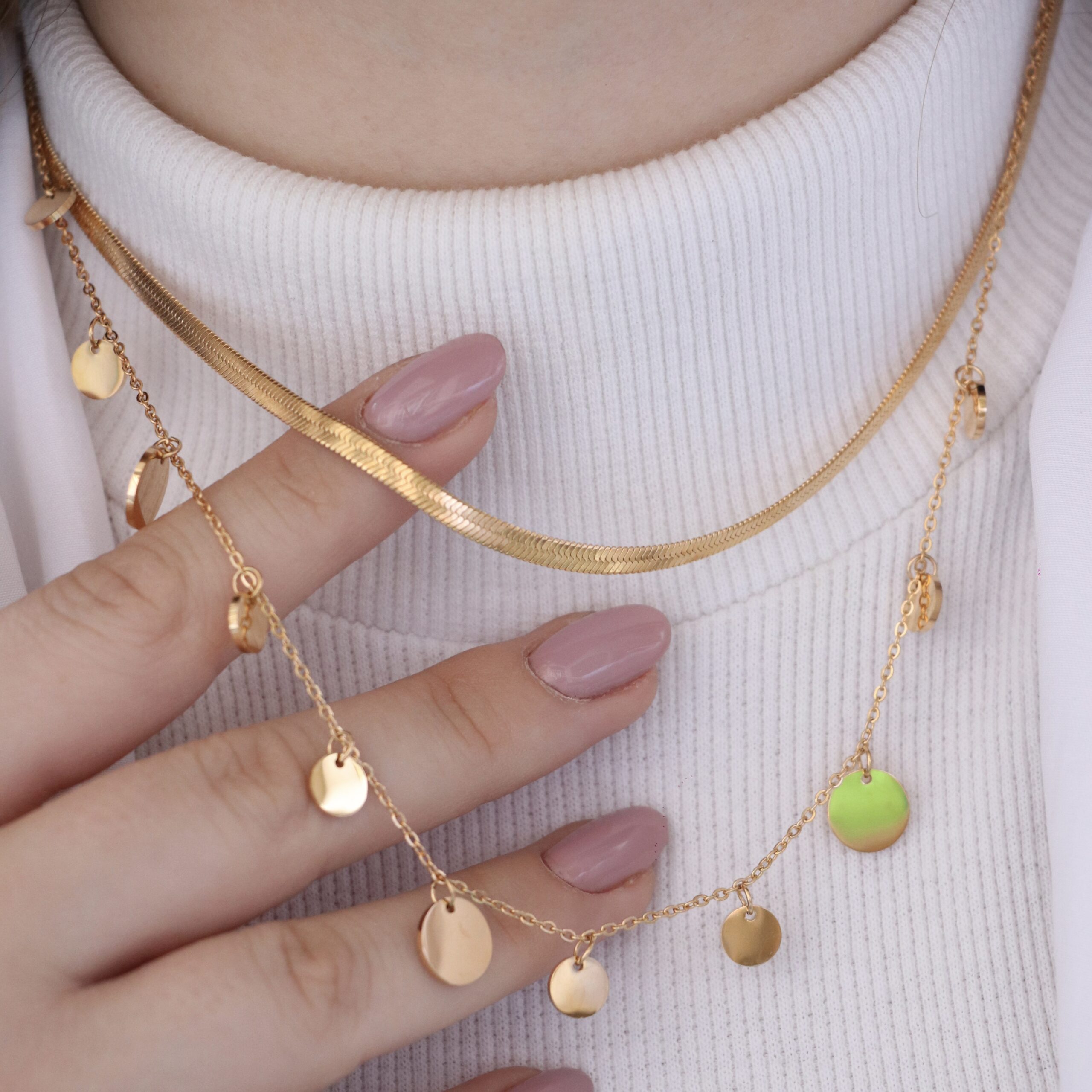گردنبند فول استیل دولاین با آبکاری قوی طلا. دولاین به هم متصل میباشد و کار کاملا شبیه طلا میباشد.برای ماندگاری بالاتر کارها لطفا مطابق کارتی که داخل بسته بندی ارسال میشود اقدام کنید. عکس این محصول بدون هیچگونه فیلتر میباشد و در نور طبیعی انجام شده است. آماده سازی و ارسال تمامی محصولات بعد از2 روز کاری بدون احتساب روز تعطیلی میباشد